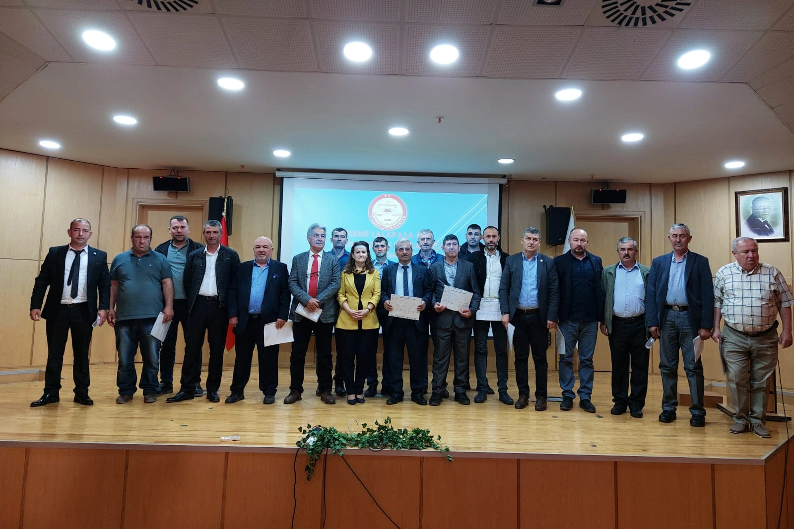 Edirne’de 31 Mart Mahalli İdareler Seçimlerinin ardından Lalapaşa ilçesinde mahalle-köy muhtarları ve azaları Edirne Adliyesi’nde mazbatalarını aldı. Muhtarlara mazbatalarını Edirne Merkez İlçe Seçim Kurulu Başkanı Sevil Cellek verdi.