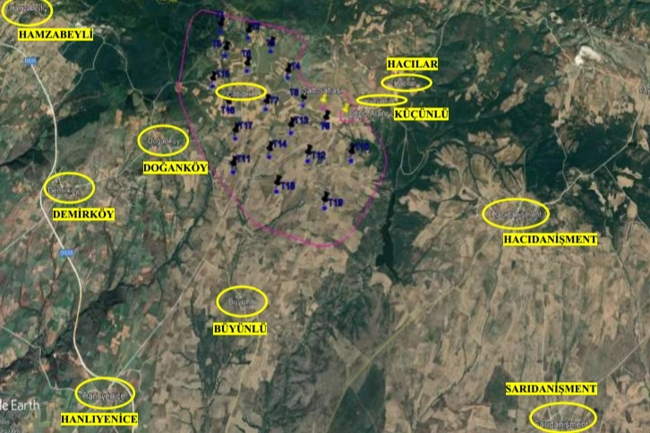 Dosyada, türbinlerin kurulacağı alanların parsel sorgu kayıtlarında mera, orman, tarla, ham toprak olarak gözüktüğü belirtilirken; Enerji Depolama Alanı ve Şalt Merkezi’nin ise mera olarak kayıtlı olduğuna yer verildi. Trakya Alt Bölgesi Ergene Havzası 1/100.000 Ölçekli Revizyon Çevre Düzeni Planı E17 paftasında söz konusu santral alanının, orman alanları, tarım arazisi ve kırsal yerleşim alanları; türbin alanlarının ise orman alanları ve tarım arazisi olarak tanımlanan alan içerisinde yer aldığı belirtildi.