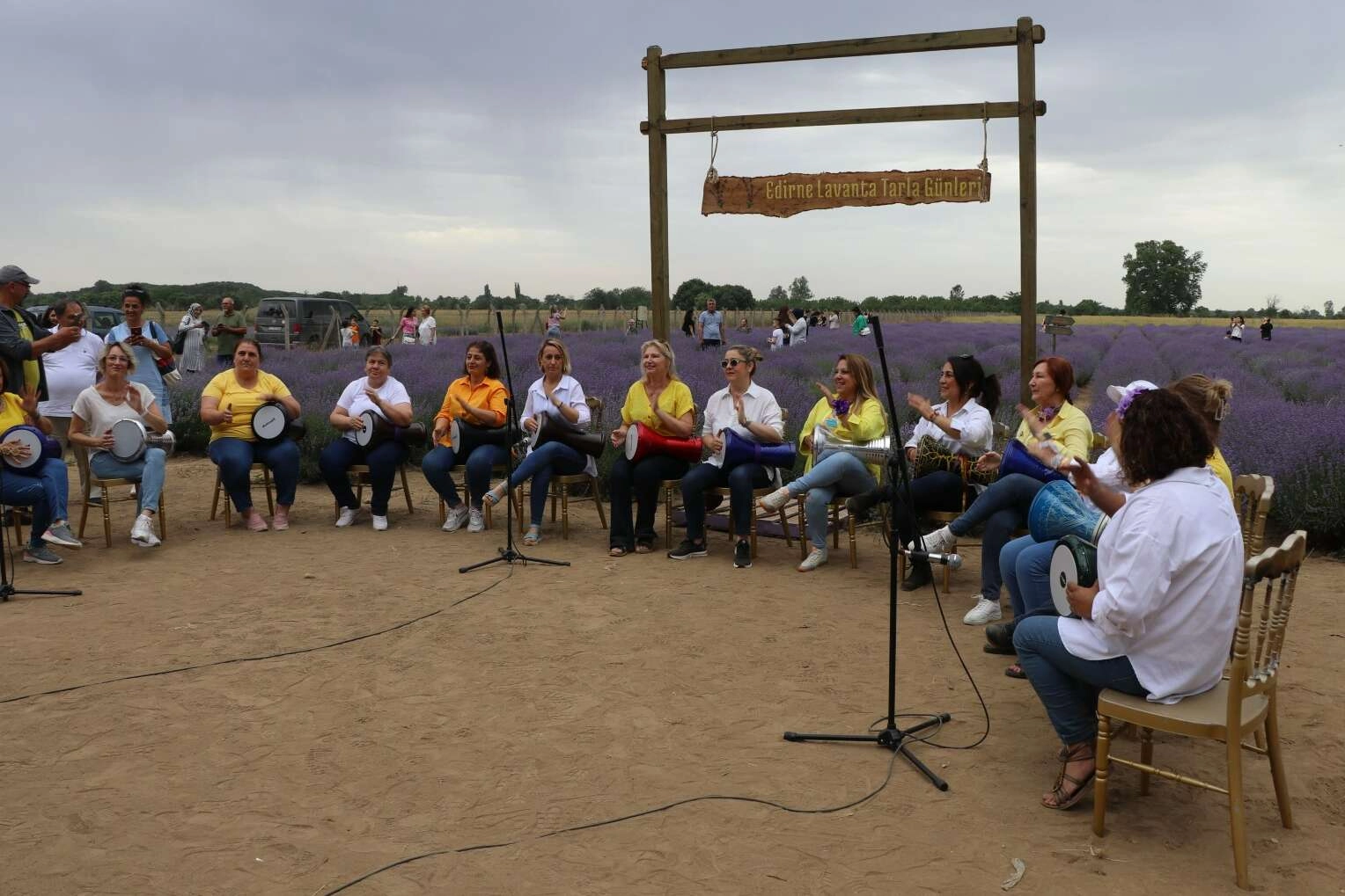 Mor renkli çiçeklerin arasında müzik yapmanın mutluluğunu yaşadıklarını ifade eden Karaman, "Burayı renklendirmek, 9/8'lik ritimleri duyurmak istedik. Grup olarak Edirne'yi ve kente özgü müzikleri tanıtmaya çalışıyoruz." dedi.