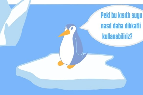 Yayınlanan animasyon videosunda küresel ısınmanın en çok etkilediği canlılar arasında yer alan penguen tarafından su tasarrufunun nasıl yapılacağı anlatıldı.