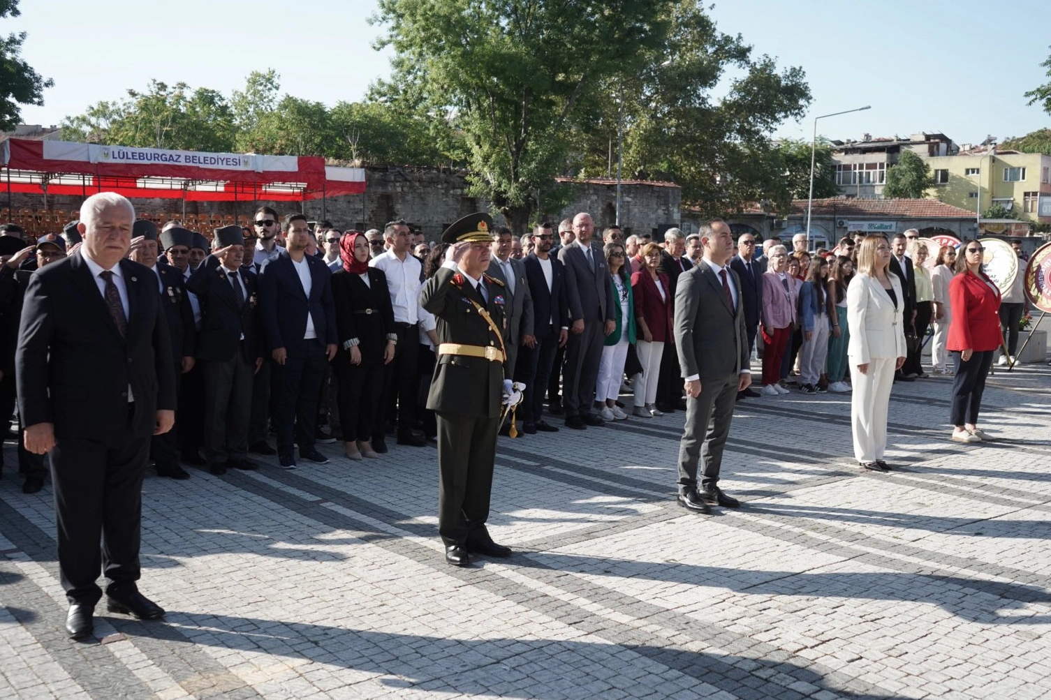 Kırklareli’nin Lüleburgaz ilçesinde 30 Ağustos Zafer Bayramı kutlamaları, tören alanında düzenlenen çelenk sunma töreniyle başladı.