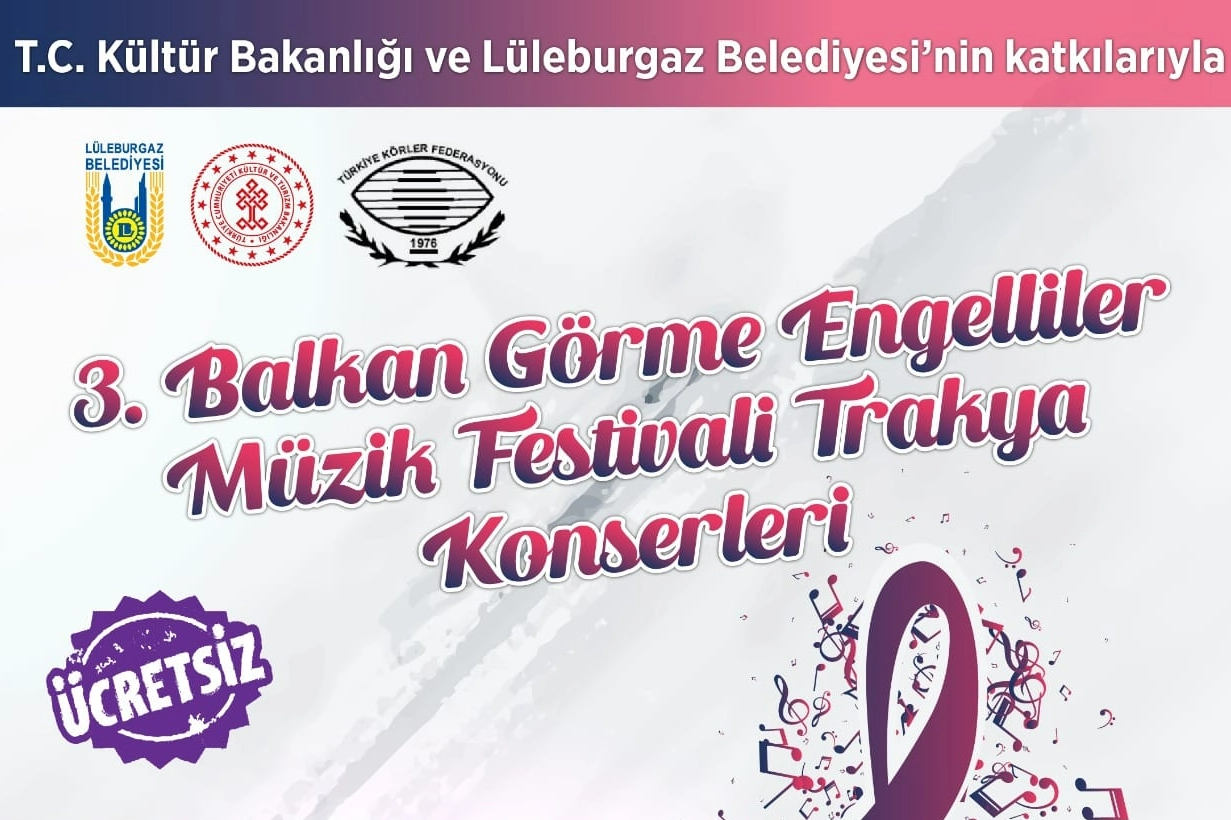 Lüleburgaz Belediyesi tarafından yapılan açıklamada; “T.C. Kültür Bakanlığı ve Belediyemizin katkılarıyla 14 Kasım Salı saat 18.00'de Bahçeşehir Koleji Lüleburgaz Kampüsü Konser Salonu'nda düzenlenecek olan 3. Balkan Görme Engelliler Müzik Festivali Trakya Konserleri'ne tüm halkımız davetlidir” denildi.