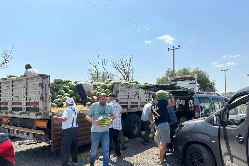 Lüleburgaz ilçesine bağlı Alacaoğlu köyünde hayırsever vatandaşlar, tır dolusu 25 ton karpuzu halka ücretsiz dağıttı. Karpuz dağıtıldığını gören vatandaşlar tırın etrafını çevreledi. Kısa sürede 25 ton karpuz bitti.