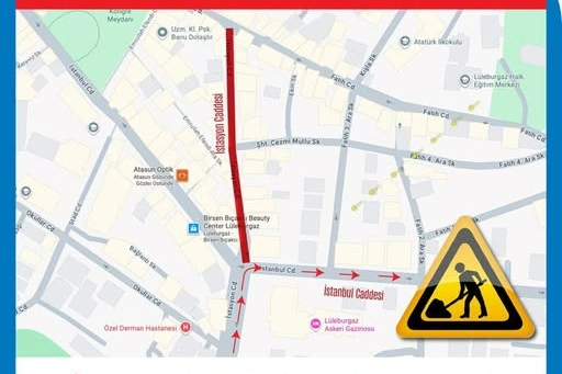 Lüleburgaz Belediyesi tarafından yapılan bilgilendirmeye göre, İstasyon Caddesi üzerindeki ana boru hattında yaşanan su patlağı nedeniyle bölgede çalışma başlatılacak. Çalışmalar süresince İstasyon Caddesi trafiğe kapatılırken, araç trafiği İstanbul Caddesi üzerinden devam edecek.