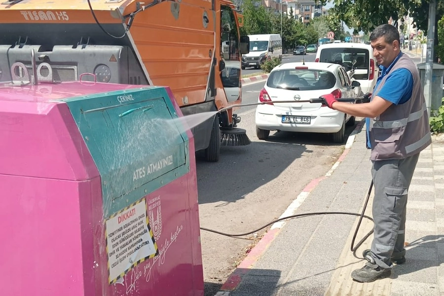 Lüleburgaz Belediyesi Temizlik İşleri Müdürlüğü ekipleri, kent genelindeki çöp konteynerlerinde yıkama ve dezenfeksiyon çalışmalarını kesintisiz sürdürüyor.