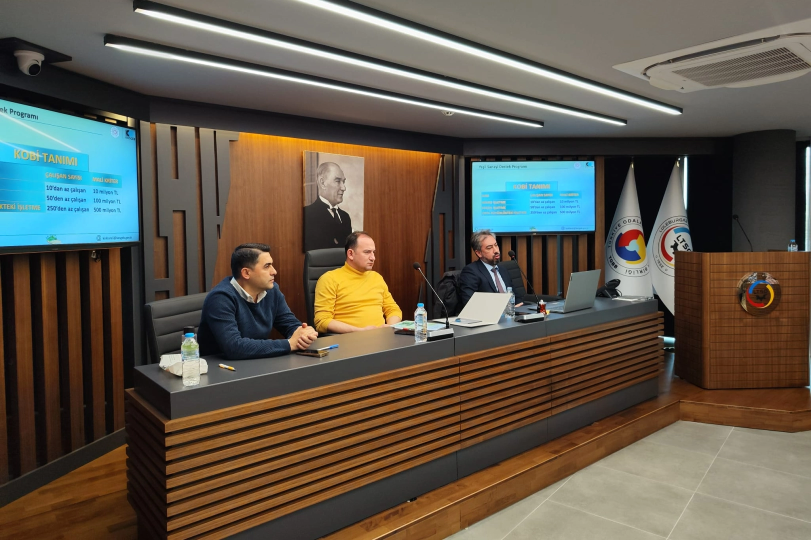 Lüleburgaz Ticaret ve Sanayi Odası'ndaki toplantıda konuşan KOSGEB İl Müdürü Mahmut Özkaya, Dünya Bankası'nın desteğiyle Sanayi ve Teknoloji Bakanlığı, TÜBİTAK ve KOSGEB tarafından yürütülen 450 milyon dolarlık "Türkiye Yeşil Sanayi Projesi" desteklerinin sanayi kuruluşları için büyük bir fırsat olduğunu söyledi.
