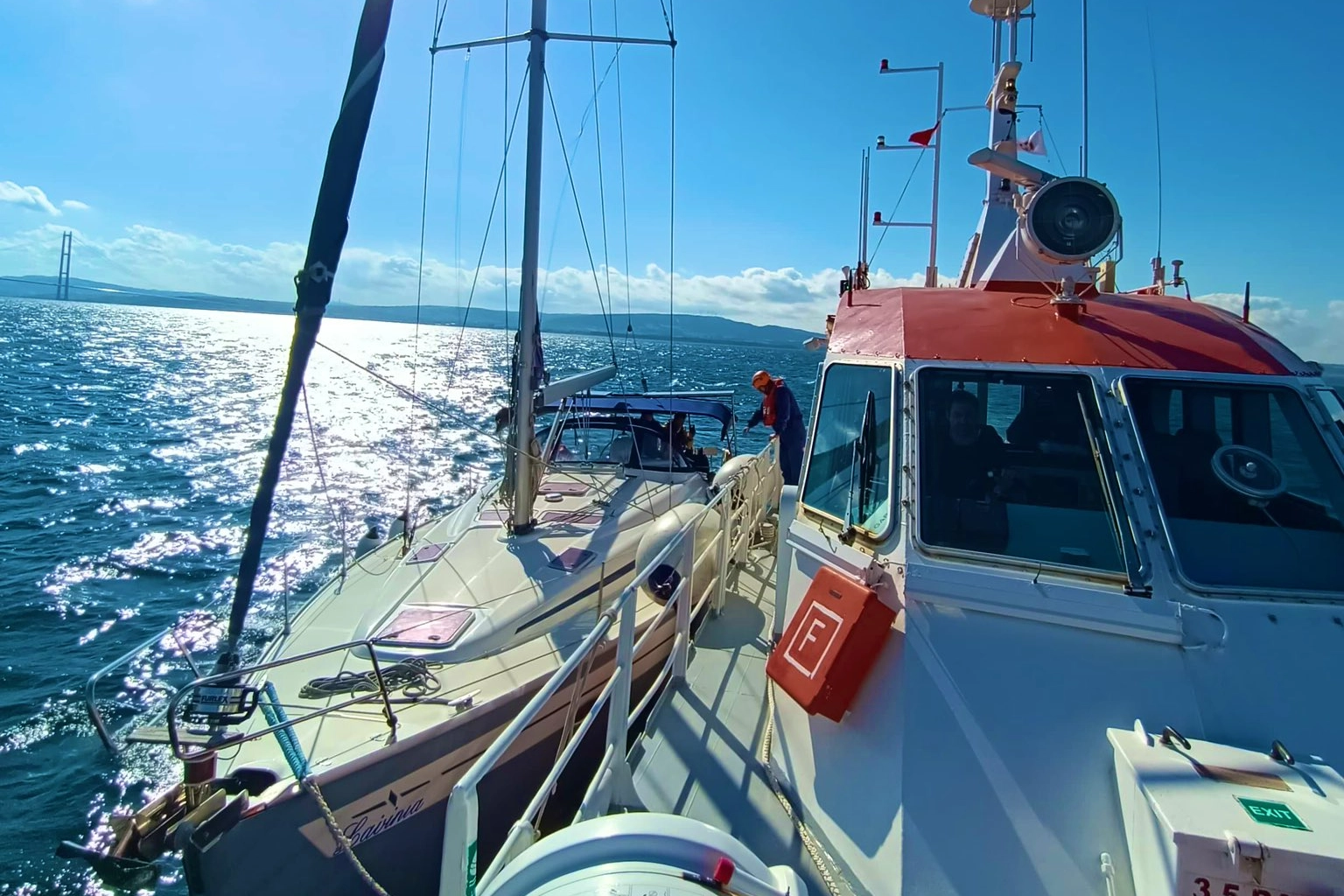 Tekne, ekipler tarafından Lapseki ilçe merkezine emniyetle yanaştırıldı.