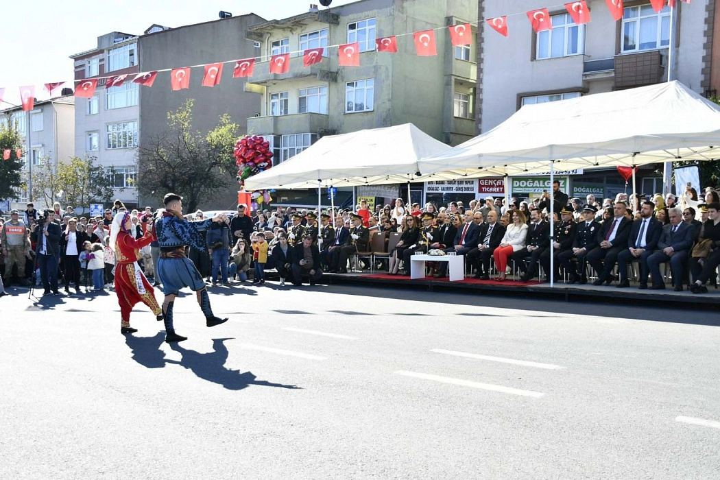 Halk Eğitim Merkezi halk oyunları ekibi, sergiledikleri gösteriyle törene renk kattı. “Köklü Geçmişten Güçlü Cumhuriyete” temalı resim, şiir, kompozisyon ve Cumhuriyet koşusu yarışmalarında dereceye giren öğrencilere ödülleri protokol üyeleri tarafından verildi.