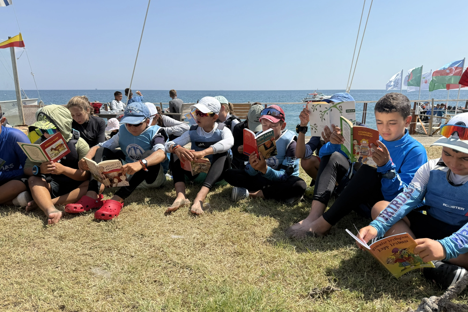 Bugün rüzgarın beklenen kuvvette esmemesi nedeniyle kıyıda kalan sporcular, kitap okuyarak zamanı değerlendirdi.