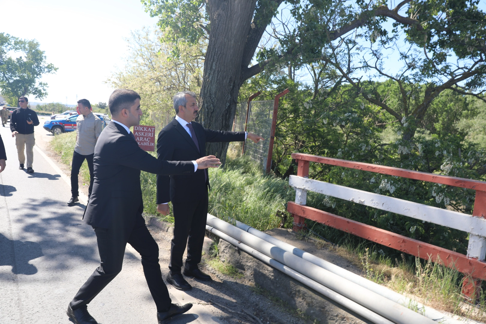 Edirne Valisi Yunus Sezer, köprünün yapılacağı alanda incelemede bulundu.