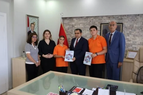 Öğrencilerin akademik ve sosyal başarılarını, okulda gerçekleştirilen etkinlikleri ve yıl boyunca yapılan çalışmaları içeren dergi; İlçe Millî Eğitim Müdürü Recep Akdemir, Okul Müdürü Demet Bora, Türkçe Öğretmeni Özlem Girgiç ile öğrenciler Uras Demir ve Ayyüce Irmak Genç tarafından Kaymakam Balaban’a takdim edildi.