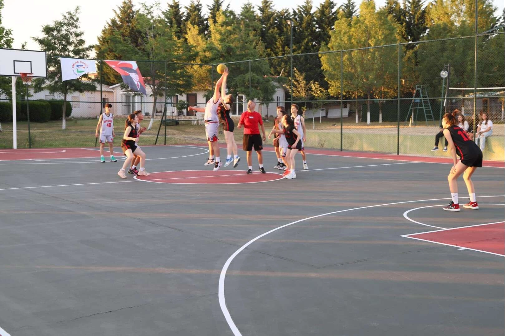 Konuşmanın ardından basketbol sahasının açılış kurdelesi kesildi, gençler basketbol oynadı.