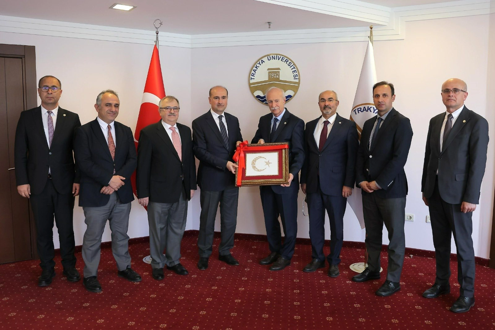 Üniversiteden yapılan açıklamaya göre, restorasyon çalışmaları devam eden Edirne Sarayı'nda incelemelerde bulunmak üzere kente gelen Yıldız, Hatipler ile bir araya geldi.