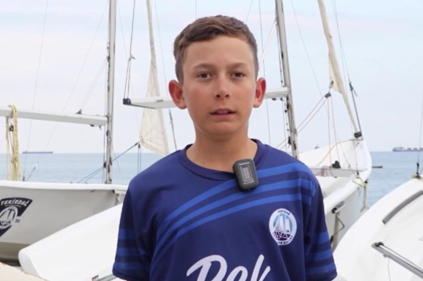 Tekirdağ Yelken Kulübü Antrenörü Doğukan Özkovalak da Rüzgar'ın 4 yıldır yelken sporuyla ilgilendiğini dile getirdi.