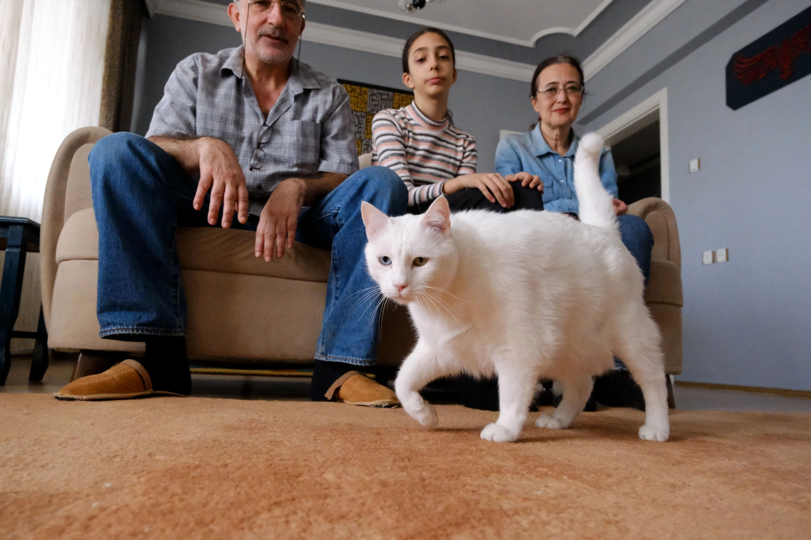 Kırklareli'nin Babaeski ilçesinde yaşayan Gülay ve Mehmet Ali Özaral çifti, bir aracın motor bölümünden kurtarılan yavru Van kedisini sahiplendikten sonra artan hayvan sevgileriyle 7 yıldır evlerini 3 kediyle paylaşıyor.