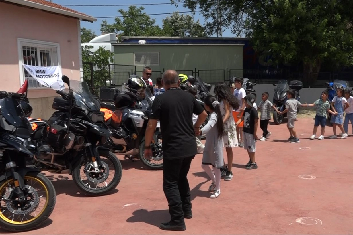 Motosiklet topluluğu "1000 Motorcu 1000 Çocuk" projesi kapsamında Kırklareli Merkez Kırk Şehitler İlkokulunda öğrencilerle bir araya geldi. Yaklaşık 55 motosikletliler ilk olarak öğrencilere motosikletler hakkında bilgi verdi. Daha sonra topluluk ile gelen drama öğretmeni Burcu Ceylan öğrenciler ile beden dili, hayal gücü ve grup etkileşimi gibi etkinlikler gerçekleştirdi. Sonrasında öğrencilere alınan kırtasiye malzemeleri, oyuncaklar ve eğitim paketleri, ayakkabı ve çanta hediye edildi. Topluluğun kurucusu ve proje koordinatörü İlker Kül projeye yaklaşık 9 yıl önce başladıklarını ifade ederek 9 bin 600'ün üzerinde çocuğa hediye dağıttıklarını söyledi. Kül, yaklaşık 55 motosiklet ve 70 kişi ile geldiklerini aktardı. Her şeyden önce kendi çocukluğuma iniyorum. O çocukların mutluluğunu içimde hissediyorum, onları mutu etmek bu projede beni daha da motive ediyor. Bir çocuğun hayatına dokunmak çok önemli bir şey. Onların ufuklarında geleceklerinde bir hedef sağlamak çok önemli. Hakkari'nin bir kasabasında, bir köyüne gittiğim zaman oradaki çocuk deniz görmemiş bir çocuğa başka umutlar veriyorsunuz. Çalışırsanız, okursanız, daha çok kitap okursanız okulu severseniz nerelere gelebileceklerini anlatıyoruz. Bu da hep motivasyon kaynağı oluyor" dedi. Çocuklarla oyunlar oynadıklarını anlatan Kül, aldıkları hediyeleri dağıttıklarını söyledi.