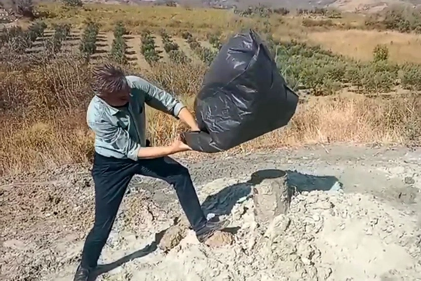 Mahalle Muhtarı Ali Altıntaş, köy sakinleri ile çıkan havanın ne olduğunu test etmek için çıkan basınçlı havayı çöp poşetine doldurdu. Çöp poşetinden bir delik açılması üzerine yakılan çakmakla çıkan gaz bir anda alev aldı. O anlar saniye saniye kaydedildi.