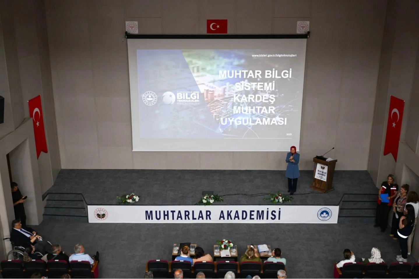 İçişleri Bakanlığı İller İdaresi Genel Müdürlüğü Muhtarlar Daire Başkanı Suna Üstüner’in sunumuyla gerçekleşen oturumda, köy ve mahalle muhtarlarına “Valilik, Kaymakamlık ve Diğer Kurumlarla İlişkiler” konulu kapsamlı bir eğitim verildi.
