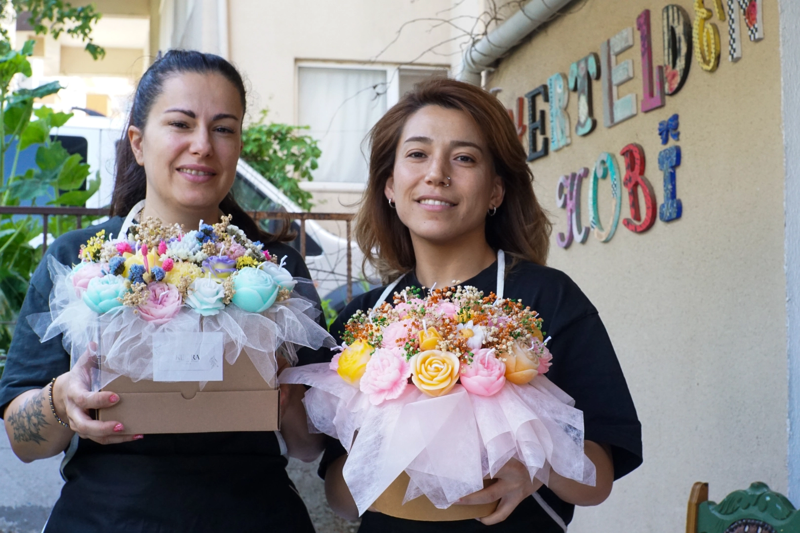 Mezun oldukları branşta işlerini sürdürmek yerine hayallerinin peşinden giden iki kadın girişimci, açtıkları atölyede tarak, ayna ve anahtarlık gibi kişiselleştirilmiş hediyelerin yanı sıra gerçeğini aratmayan mumdan yapılmış çiçek buketleri tasarlamaya başladı.