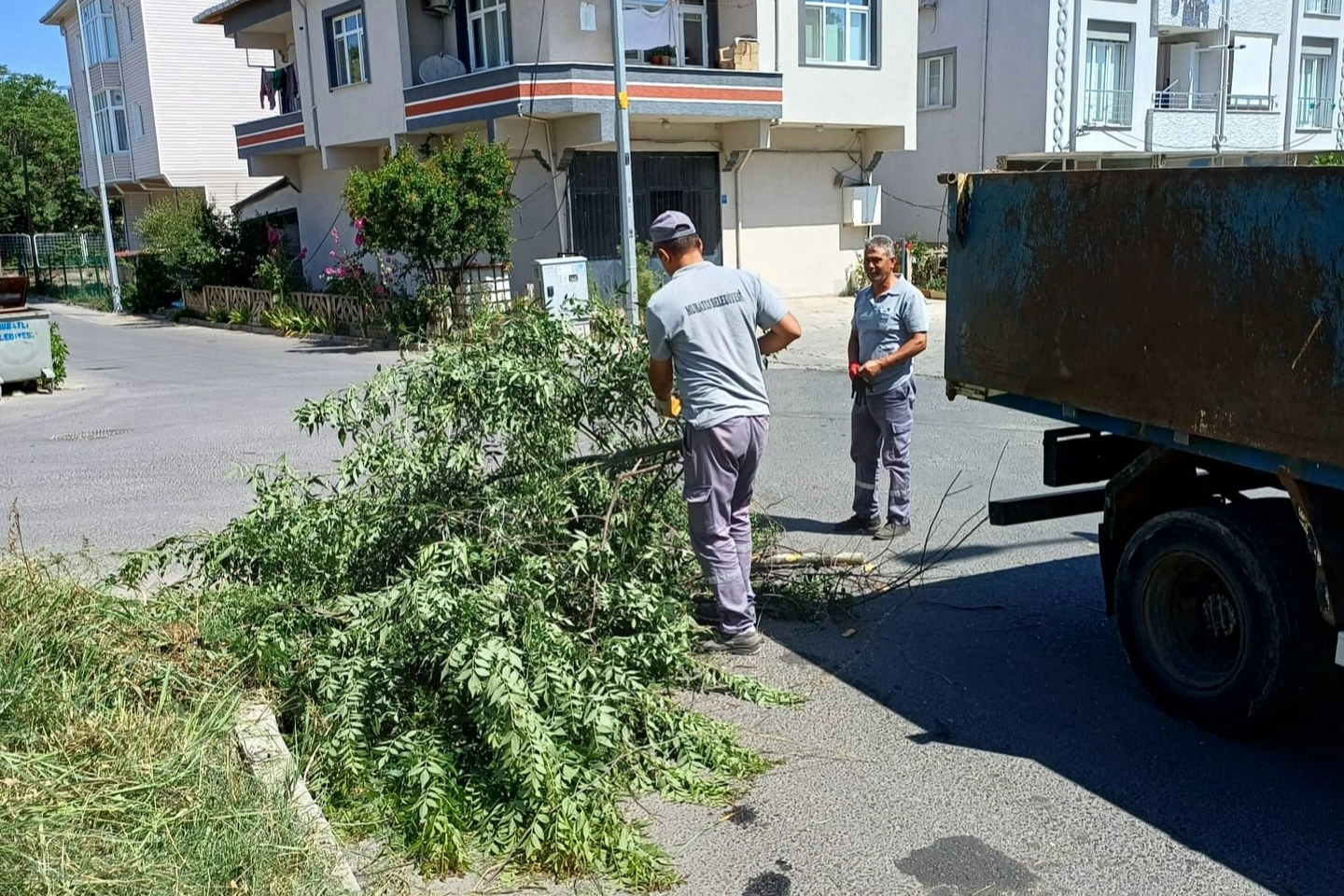Öte yandan Çevre ve Temizlik İşleri Birimi, rutin temizlik faaliyetlerinin yanı sıra hacimli atık toplama çalışmalarını da sürdürdü. İnşaat atıkları, çuvallar ve budanmış ağaç dalları titizlikle toplanarak çevre kirliliği önlenirken, kullanım ömrünü tamamlamış çöp konteynerleri de yenileriyle değiştirildi.