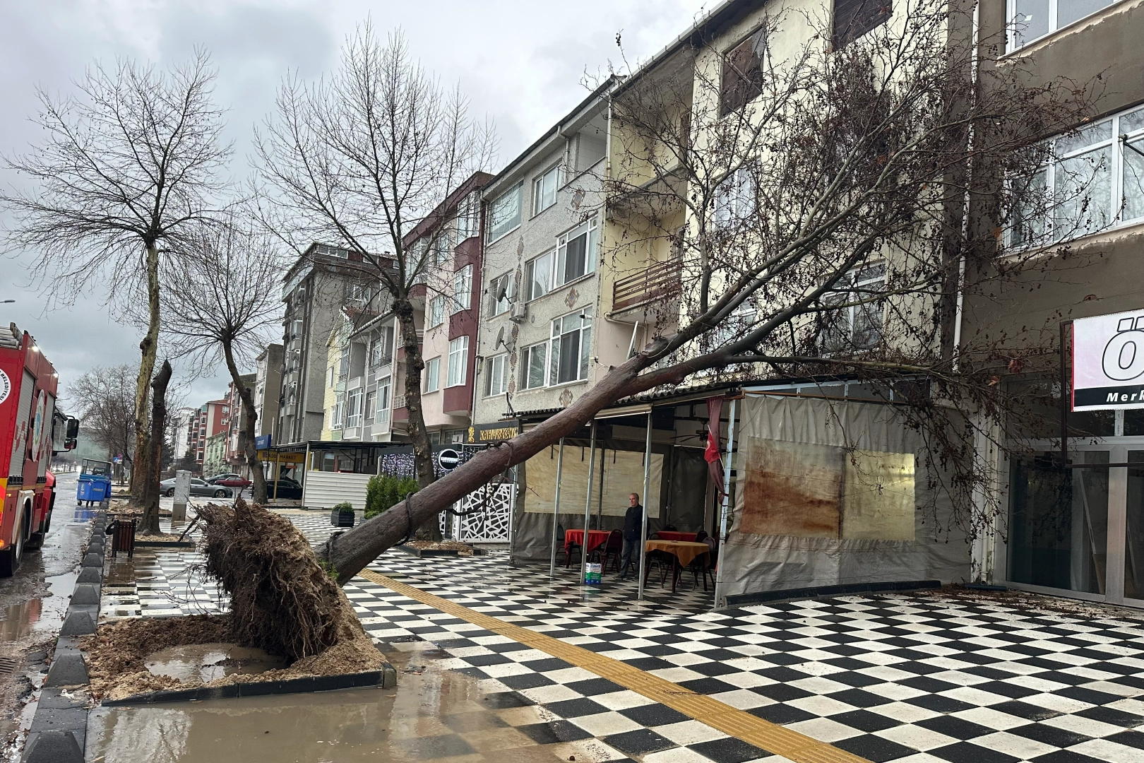 Muradiye Mahallesi Mustafa Kemal Caddesi üzerinde kökünden sökülen ağaç, bir kahvehanenin çatısının üzerine devrildi. Ağacın dalları da binadaki evlerin camlarına çarptı. Çevrede kısa süreli tedirginlik yaşanırken, ihbar üzerine bölgeye itfaiye ekipleri sevk edildi. Ekipler, çevrede güvenlik önlemi alarak, devrilen ağacın kaldırılması için çalışma başlattı. Olayda herhangi bir can kaybı ya da yaralanma yaşanmadığı öğrenildi.