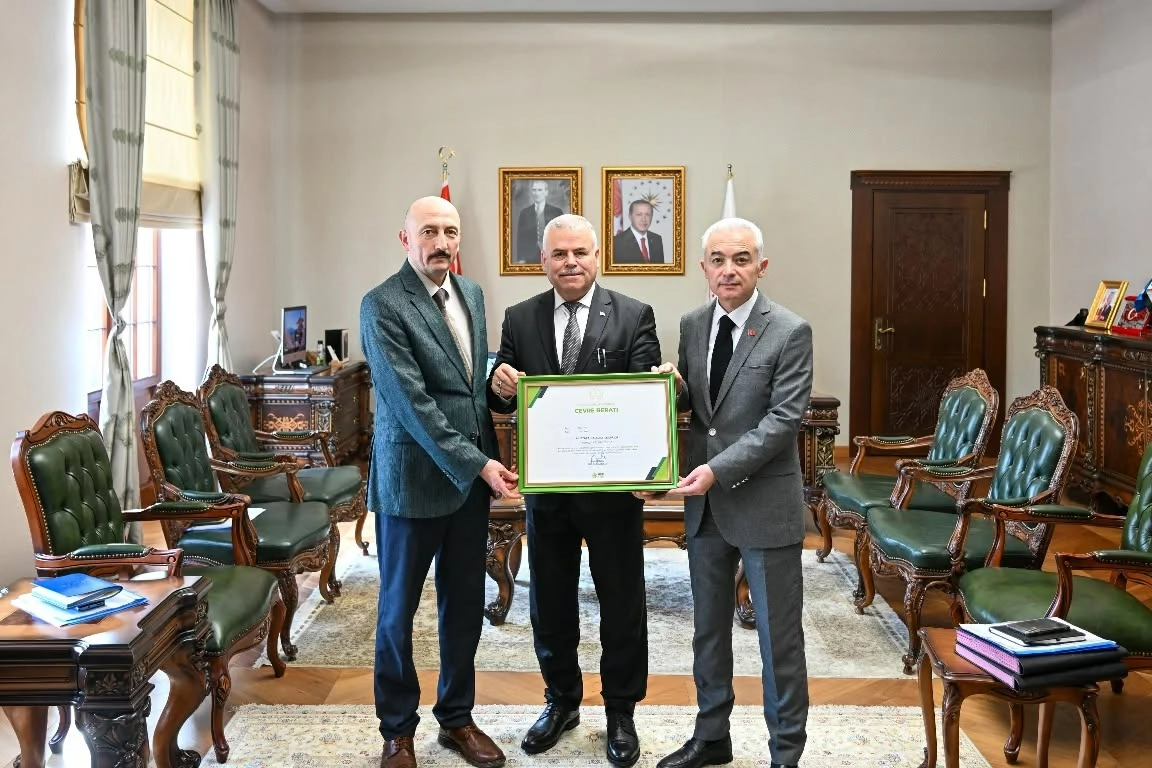 Vali Turan, İl Millî Eğitim Müdürü Murat Altınöz ve Okul Müdürü İbrahim Erginsoy’u Valilik Makamı’nda kabul etti. Ziyarette, Millî Eğitim Bakanı Yusuf Tekin’in okulun çevrenin korunması, geliştirilmesi ve çevre bilincinin yaygınlaştırılması konusundaki özverili çalışmalarını takdir ederek Çevre Beratı Ödülü verdiği belirtildi.