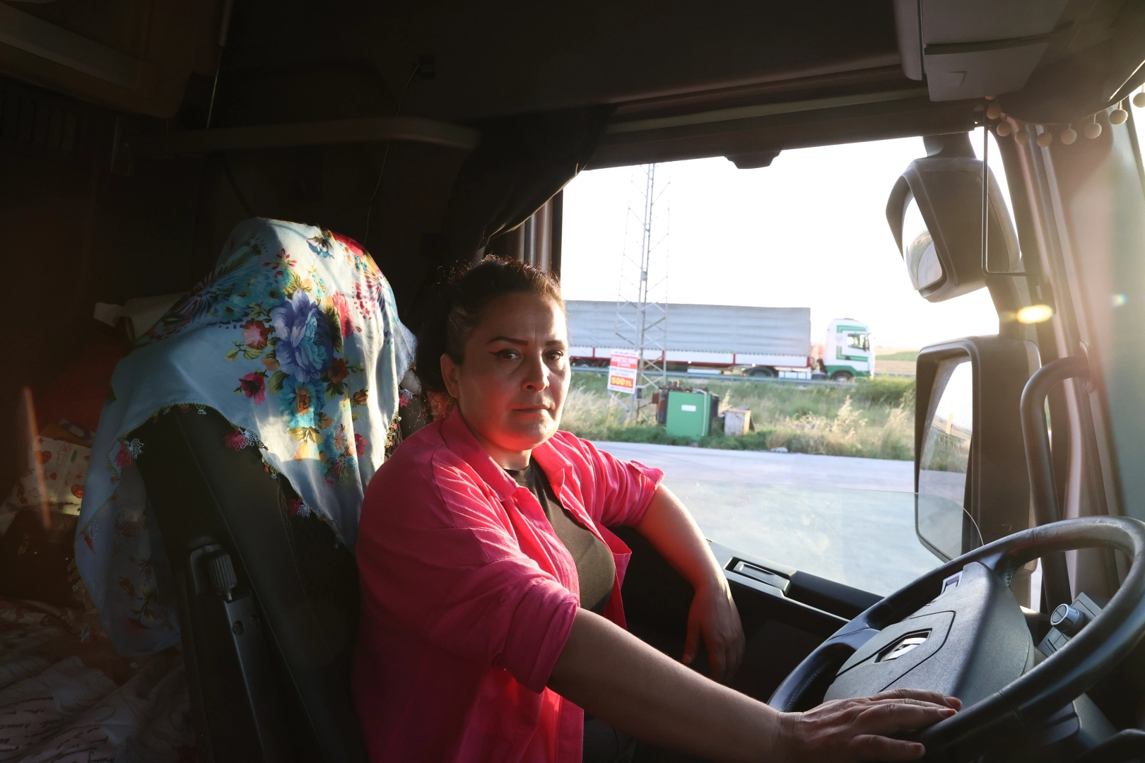 "Türkiye'de İzmir, Ankara, Kayseri, Hatay ve Adana'ya gidiyorum ancak daha çok Bulgaristan'a dorse çekiyorum. Tır benim en çok zaman geçirdiğim yaşam alanım. Yola çıkmadan önce temizliğini yapıyorum. Yolda gerekli eşyalarımı yanıma alıyorum. Dorsemi taktıktan sonra evrakımı ve aracı kontrol ediyorum. Tır bizim ikinci evimiz ben bu yüzden ayakkabıyla girmiyorum. Evimizi nasıl temiz tutuyorsak, tırı da öyle temiz tutuyoruz kesinlikle ayakkabıyla binmiyoruz."