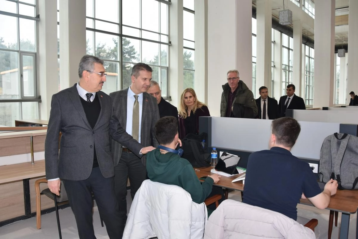 Ziyaretinde Şahin'e rektör yardımcıları, Prof. Dr. Celalettin Vatandaş, Prof. Dr. Gülsüm Özkan, Prof. Dr. Murat Taşan, Yapı İşleri ve Teknik Daire Başkanı Öğretim Görevlisi Dr. Ahmet Bal da eşlik etti.