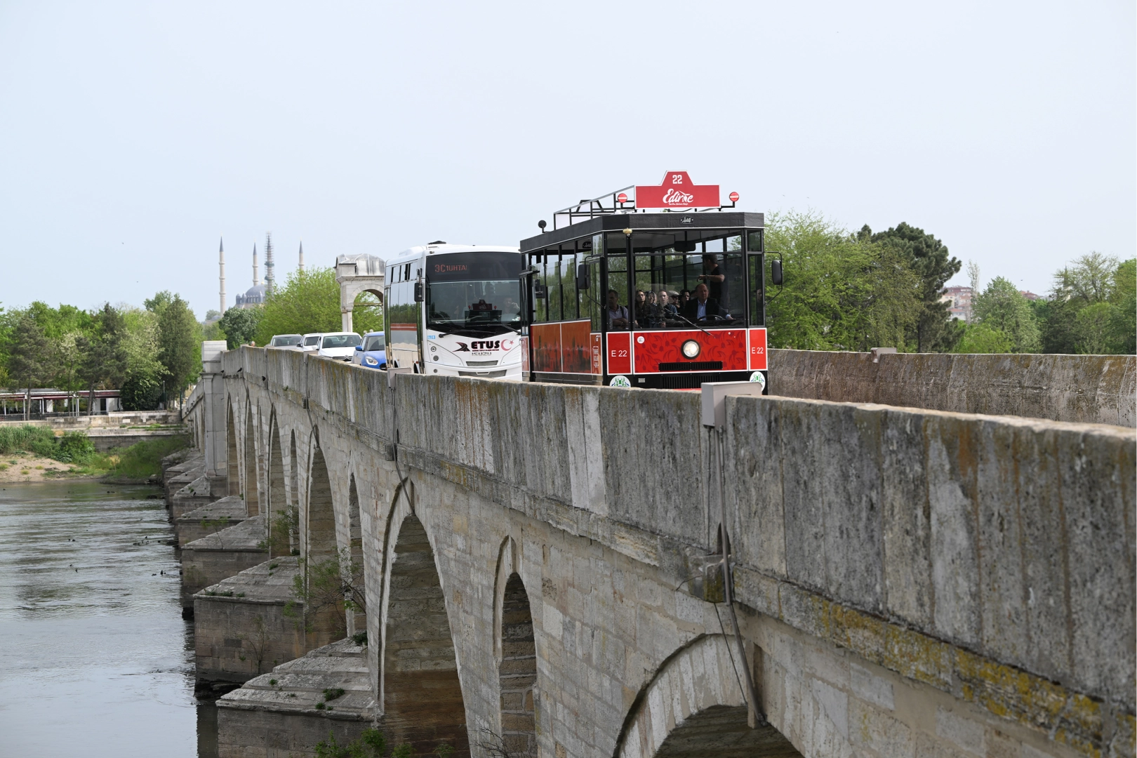 Vali Yunus Sezer'in talimatıyla kenti ziyaret edenlerin tarihi ve turistik noktalarına ulaşımını kolaylaştırmak amacıyla lastik tekerlekli "Edirne Turistik Gezi Treni" hizmete sunuldu.