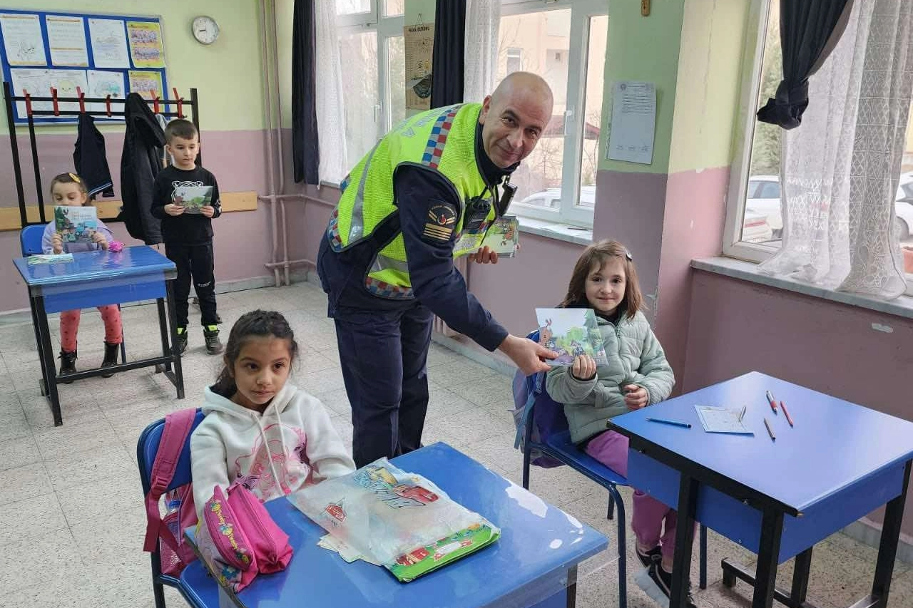 Edirne merkeze bağlı Büyükdölük köyü İlköğretim Okulu'nda eğitim gören öğrencileri taşıyan okul servis araçları denetlendi. Jandarma ayrıca öğrencilere temel trafik konuları hakkında eğitim verdi.