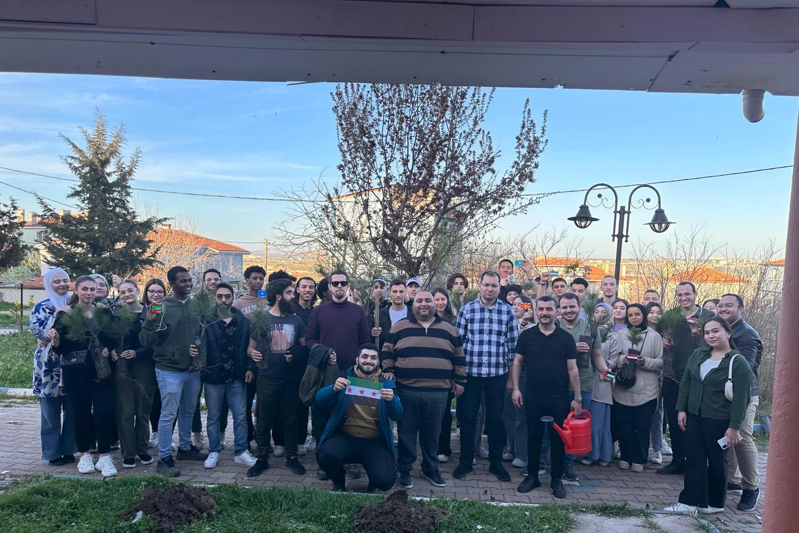 Yaşananlara dünyanın sessiz kaldığını belirten Çalışkan, "Programa katılan 60 uluslararası öğrencimiz, barış ve kardeşlik için Gazze'de ölen çocuklar adına fidan dikti. Öğrencilerimiz diktikleri fidanları sulayıp kendi ülkelerinin bayrağını da fidana astı. Burada tekrardan Gazze'de yaşanan zulmün ve katliamın bir an öncesi sonlanmasını diliyor ve mazlum kardeşlerimize dualar ediyoruz." ifadelerini kullandı.