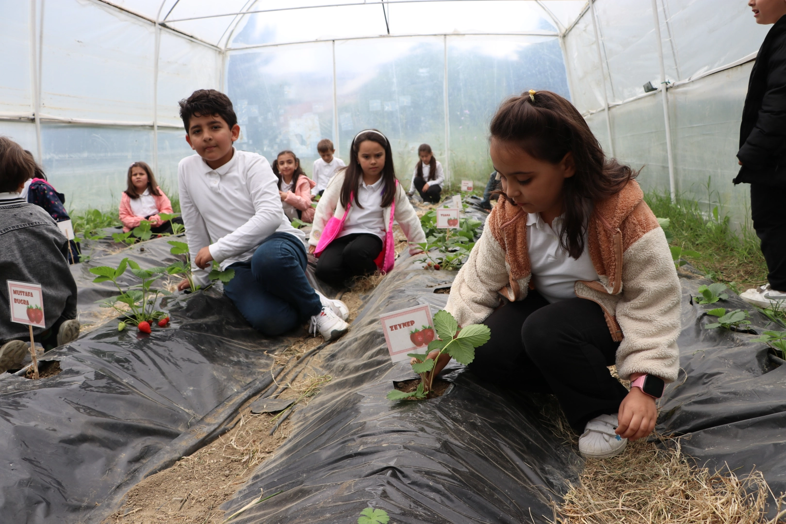 Serada çilek yetiştiren öğrencilerden 2. sınıf öğrencisi Duru Nisa Narin ise arkadaşlarıyla sıfır atığın önemini ve çilek yetiştirmeyi öğrendiklerini ifade etti.