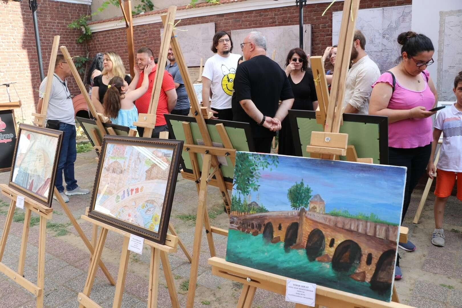Edirne Kent Müzesi bahçesinde açılan sergide öğrencilerin çizdiği 39 resim sergilenmeye başladı.