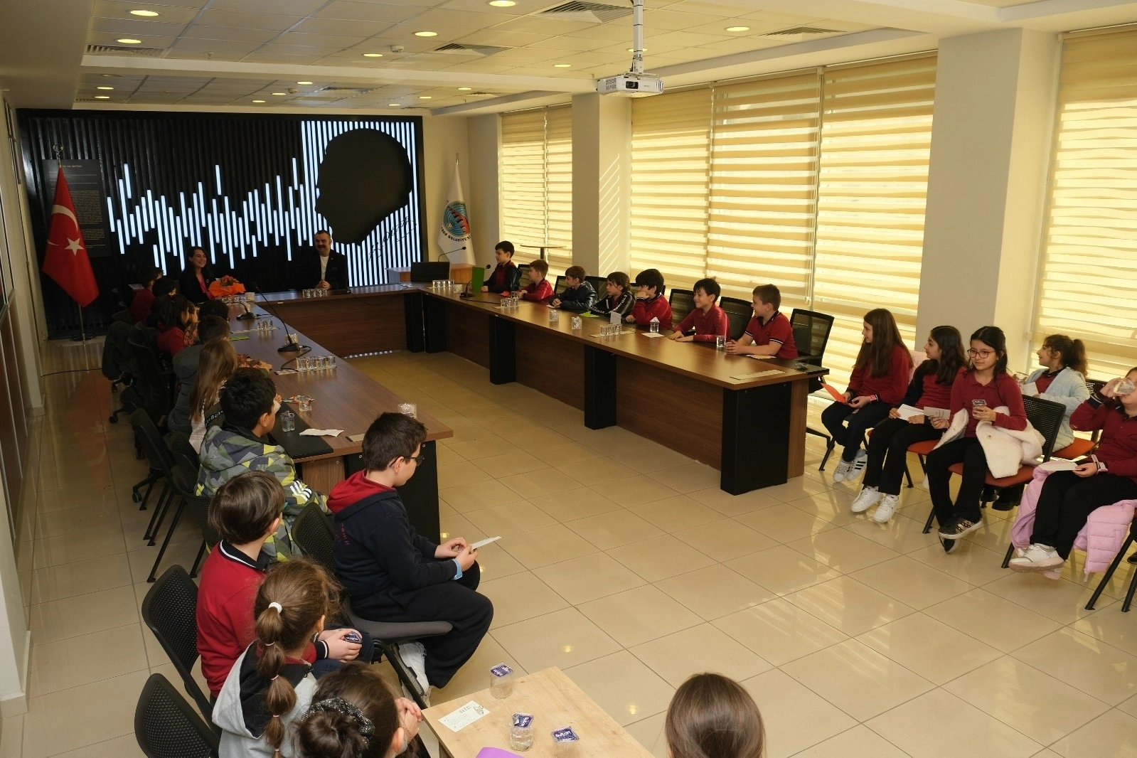 Öğretmenleri Simge Akbuz eşliğinde belediyeyi ziyaret eden öğrenciler, Martin ile bir süre sohbet etti.