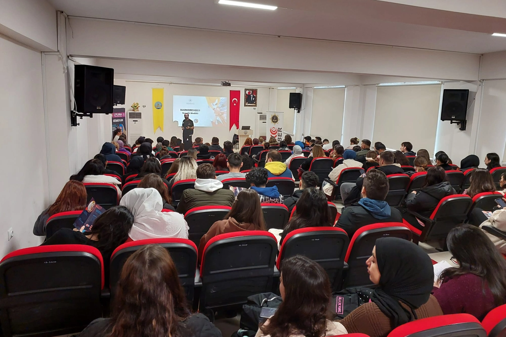 Konferansta, Edirne İl Emniyet Müdürlüğü’nde görevli narkolog Hakan Yılmaz tarafından öğrencilere sunum eşliğinde madde bağımlılığının zararları, uyuşturucuyla mücadele, madde kullanımının belirtileri ve sokak satıcıları konularında bilgiler verildi.