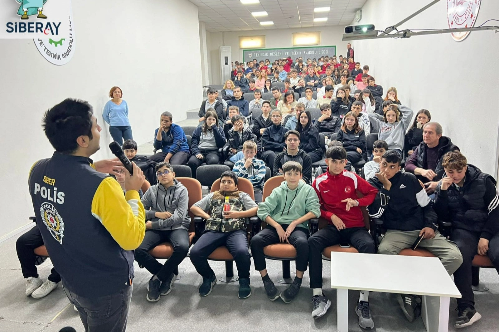Siber Suçlarla Mücadele Şube Müdürlüğü'nün geliştirdiği SİBERAY programı çerçevesinde, öğrenciler güvenli ve bilinçli internet kullanımı, siber zorbalık, sosyal medya bağımlılığı ve zararları, yasa dışı bahis ve teknoloji bağımlılığı gibi önemli konularda bilgilendirildi. Programın amacı, gençleri siber suçlara karşı bilinçlendirmek ve internet kullanımlarını güvenli hale getirmek olarak belirtildi. Yetkililer, gençlerin internet ortamında karşılaşabileceği tehlikeleri anlatırken, siber zorbalığın etkileri ve yasadışı bahis gibi risklerin öğrenciler üzerindeki muhtemel sonuçları hakkında da detaylı bilgiler sundu. Öğrenciler, sosyal medyada ve internet kullanımında daha dikkatli olmaları gerektiği konusunda uyarıldı ve bilinçli bir internet kullanıcı olmanın önemi vurgulandı. Etkinlikte ayrıca, teknoloji bağımlılığının gençler üzerindeki olumsuz etkileri ele alınarak, öğrencilere bu konuda farkındalık kazandırmaya yönelik konuşmalar yapıldı. Siber suçlara karşı alınabilecek önlemler ve öğrencilerin günlük yaşamlarında dikkat etmeleri gereken noktalar anlatıldı.