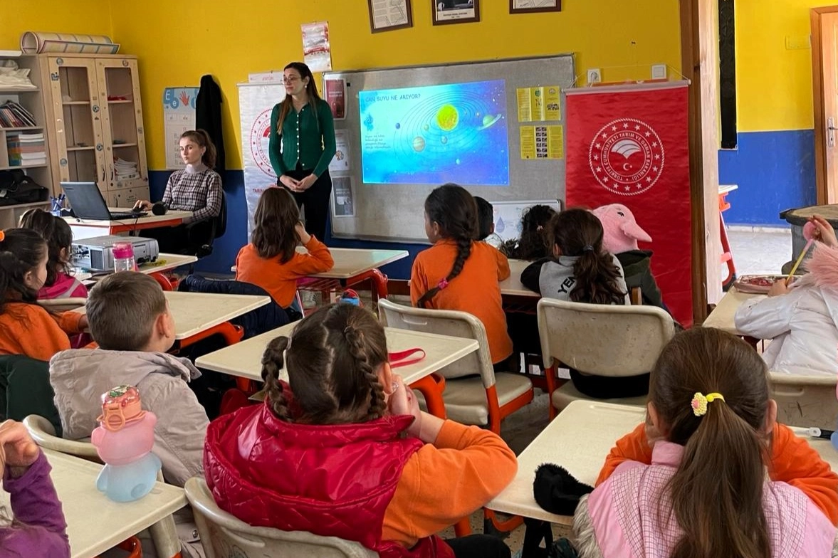 Sunum sırasında öğrencilere, su tasarrufunun ve verimli su kullanımımın dünya için önemi vurgulandı ve gıda israfının önlenmesi için yapılması gerekenlerden bahsedildi.
