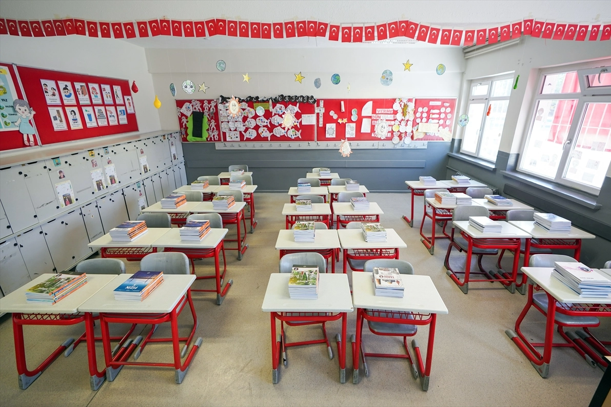 Ankara'nın Çankaya ilçesindeki Ayten Şaban Diri İlkokulu ve Ortaokulu'nda görev yapan öğretmen ve görevlileri, ders kitaplarını tek tek ayırarak sıraların üzerine yerleştirdi.