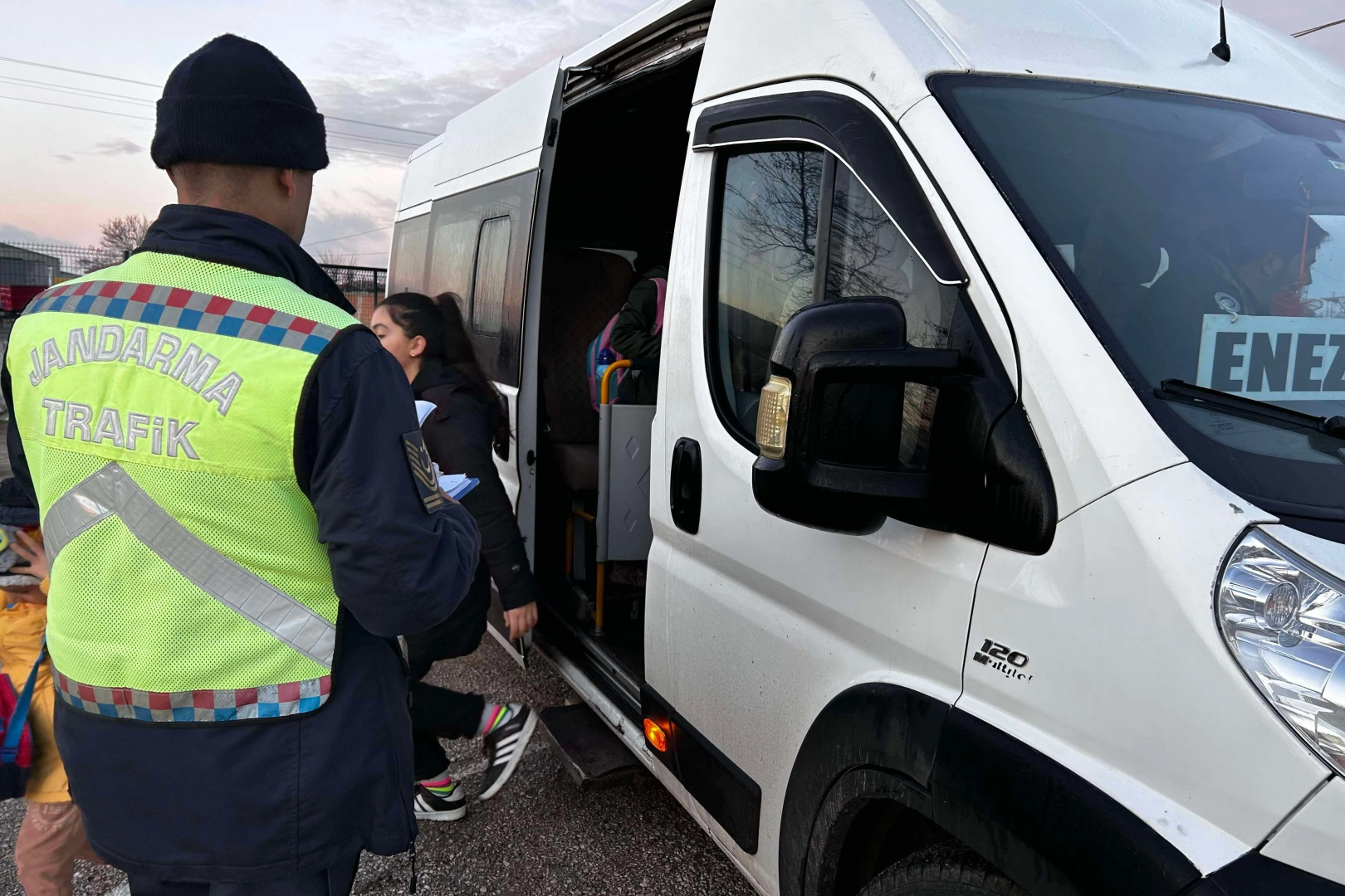 Edirne’nin Enez ilçesine bağlı Büyükevren ve Hasköy ilk ve ortaokulunda eğitim gören öğrencileri taşıyan okul servis araçları denetlendi. Ayrıca öğrencilere, taşımalı eğitim sürecinde güvenliği sağlamak amacıyla temel trafik konuları hakkında eğitim ve bilgilendirme yapıldı.