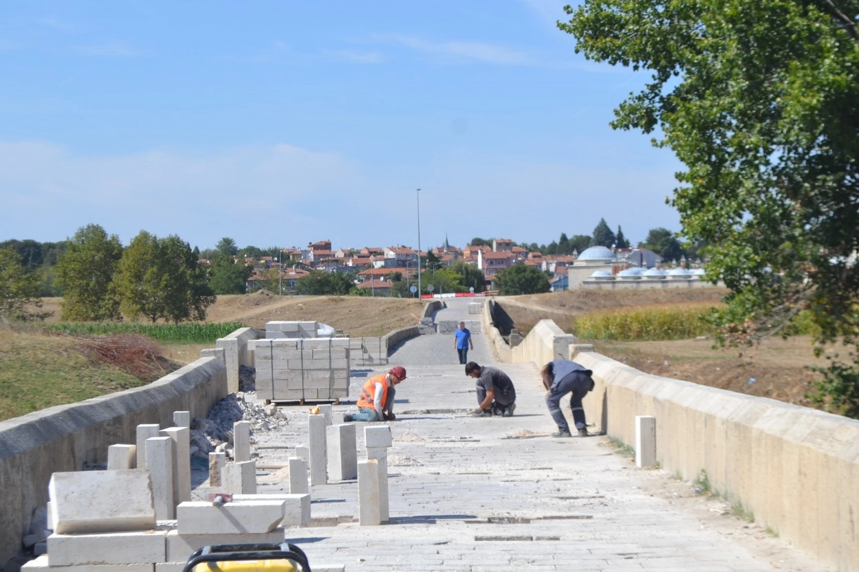Edirne’nin tarihi köprülerinde bazı taşların yıpranması ve yerlerinden çıkmasıyla oluşan çukurlar, sürücülere zor anlar yaşatıyordu. Onarım çalışmaları, Edirne Kültür Varlıklarını Koruma Kurulu’nun izniyle Karayolları tarafından yürütülüyor. Köprüdeki onarım süresince ulaşım diğer köprülerden sağlanacak.
