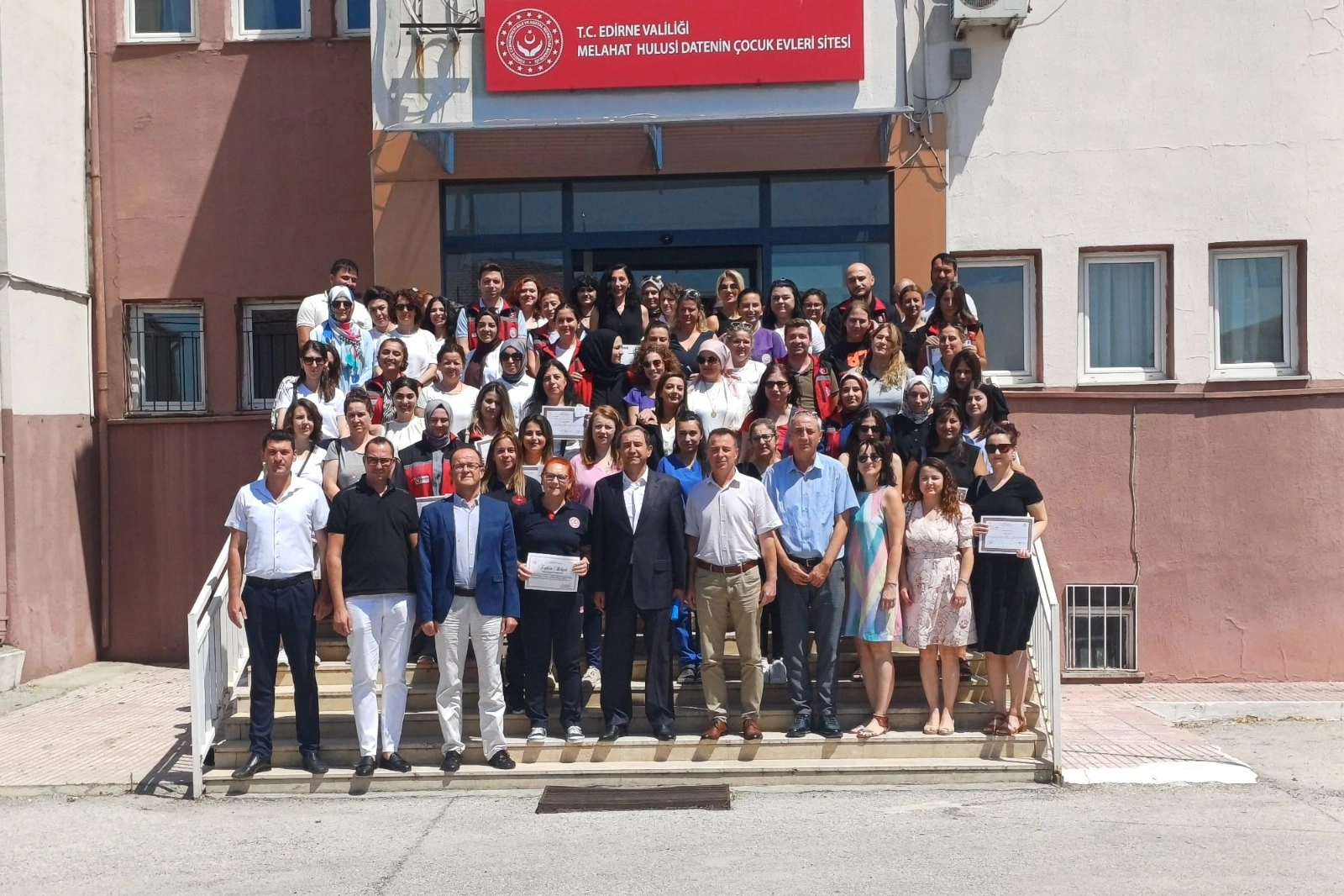 Edirne’de Aile ve Sosyal Hizmetler İl Müdürlüğü ile Edirne Valiliği İlk Yardım Eğitim Merkezi işbirliğiyle düzenlenen uygulamalı ilk yardımcı eğitimlerine katılan personellere sertifika teslim töreni gerçekleştirildi.