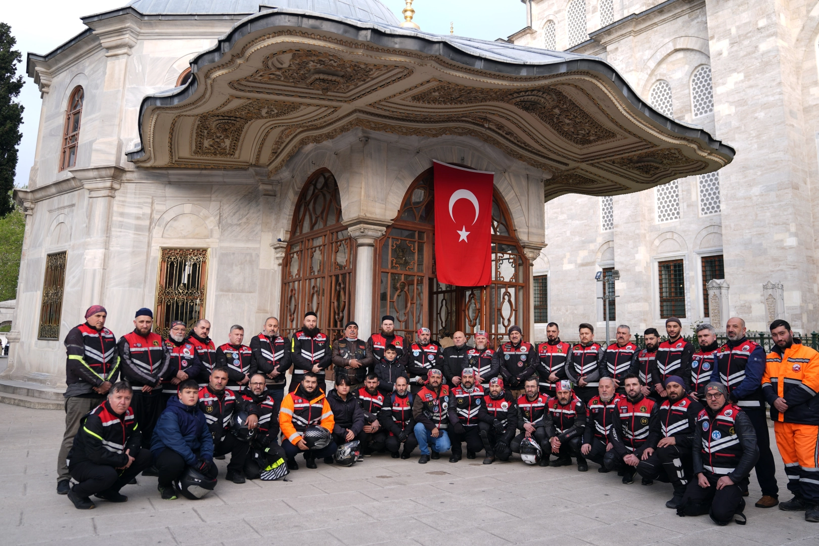Türbede bir süre dua eden grup, daha sonra motosikletleriyle kortej halinde Çanakkale Şehitliği'ne hareket etti.