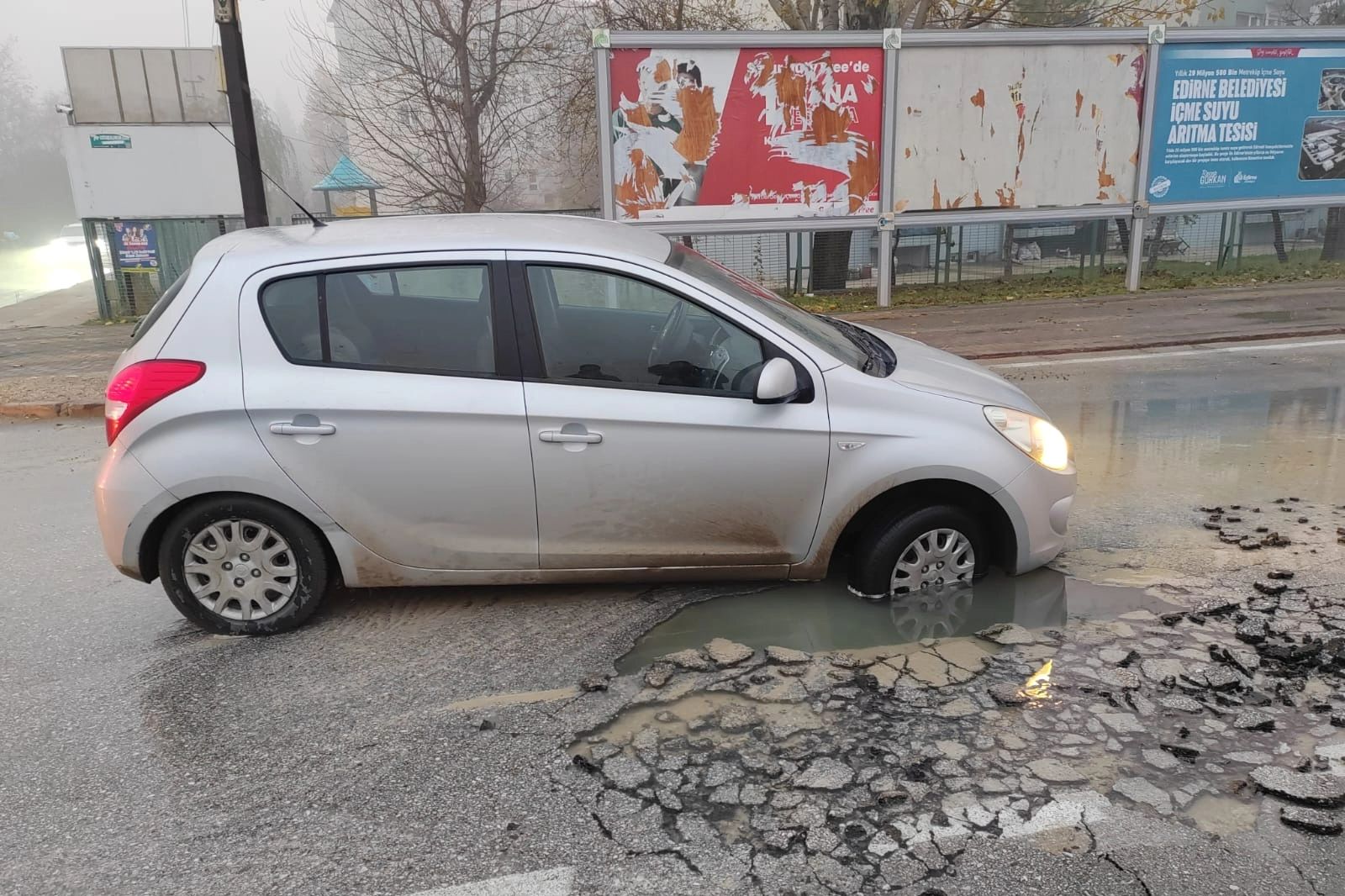 Edirne'de benzer sorunlar nedeniyle daha önce de araçların açılan çukurlara girdiğini anlatan Tağ, "Çok yavaş seyrediyordum aracın ağırlığıyla asfalt çöktü ve lastik çukura girdi. Yolda hiçbir uyarı levhası yoktu. Yetkililerin bu sorunlara bir an önce çözüm bulmasını istiyoruz. Su borusu patlağını dün gece belediyeye bildirmişler ama bu saate kadar bir önlem alınmamış." dedi.