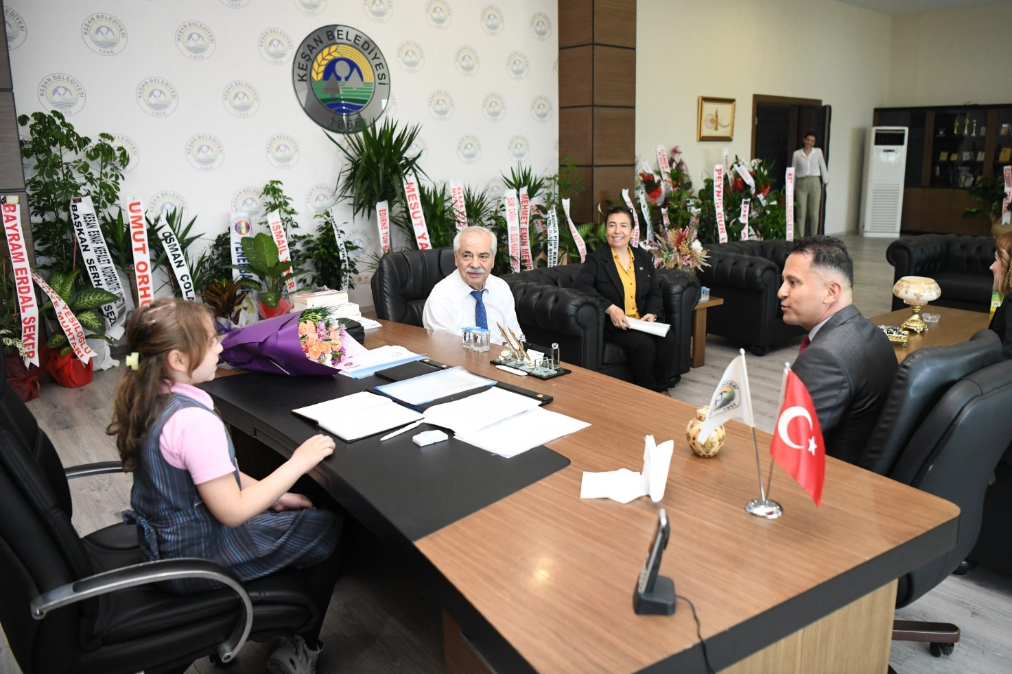 Keşan Belediye Başkanı Op. Dr. Mehmet Özcan, başkanlık makamını Kurtuluş İlkokulu 4. Sınıf öğrencisi Ceren Şen’e devretti.