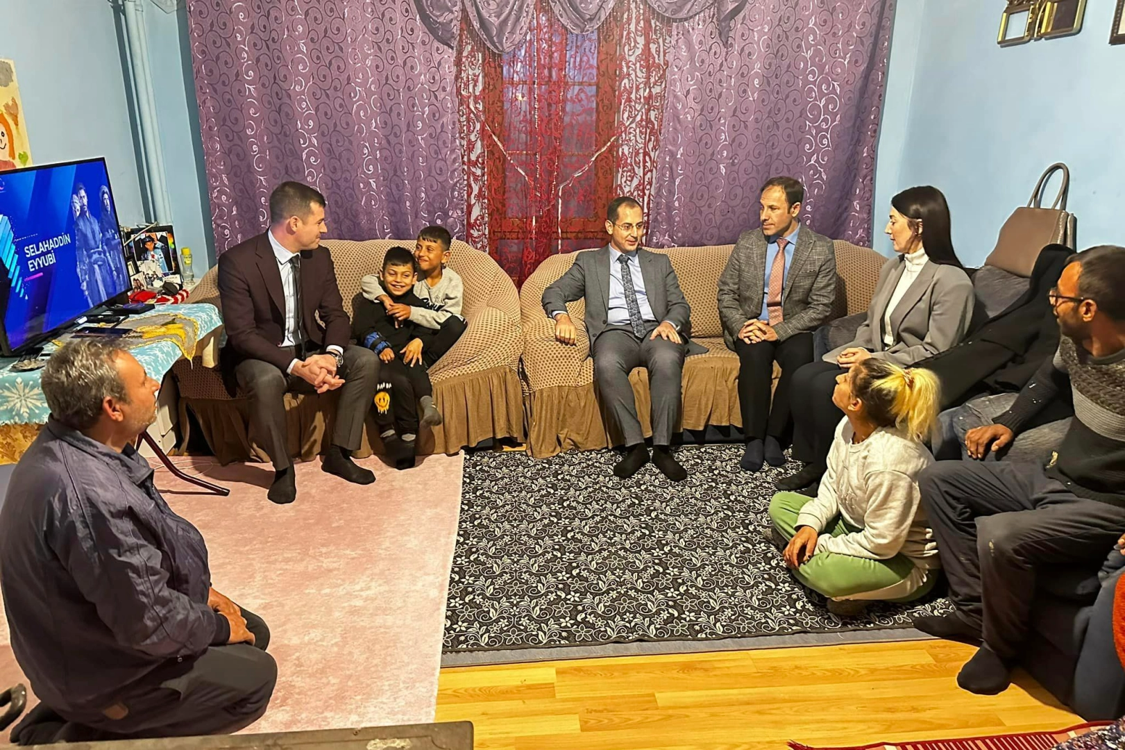 Kaymakam Özen, Gençlik ve Spor İlçe Müdürü, İlçe Milli Eğitim Müdürü ve Vakıf Müdürü ile birlikte Özdemir, Ubay ve Sonay ailelerini evlerinde ziyaret etti.