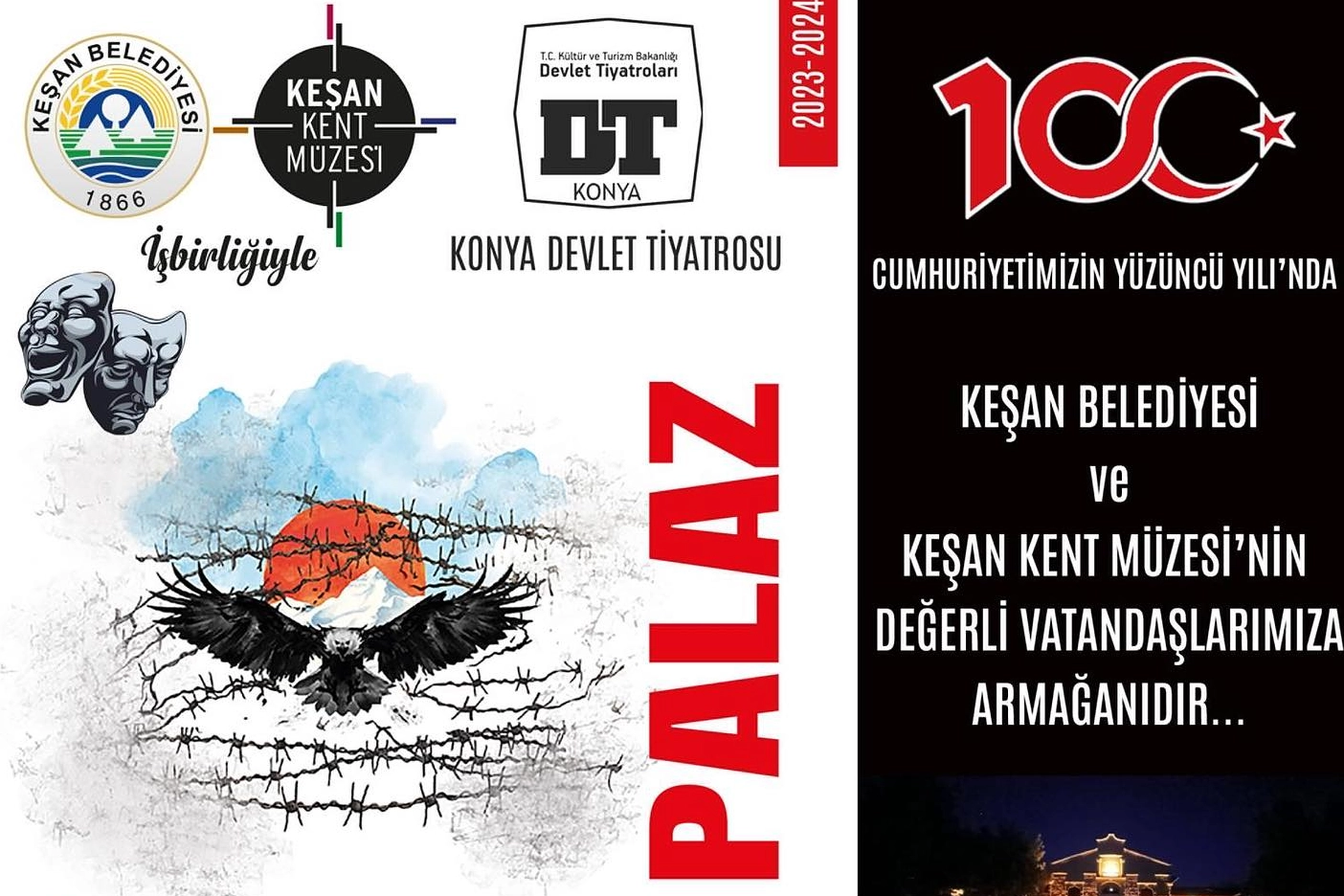 Edirne Keşan Belediyesi, Devlet Tiyatroları 2023-2024 sezonunu açacağı Konya Devlet Tiyatrosu'nun sahneleyeceği "Palaz" adlı oyununa tüm Keşanlıları davet etti.