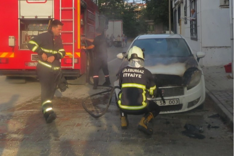Dere Mahallesi, Set Sokak'ta park halindeki otomobilde henüz bilinmeyen nedenle yangın çıktı.
