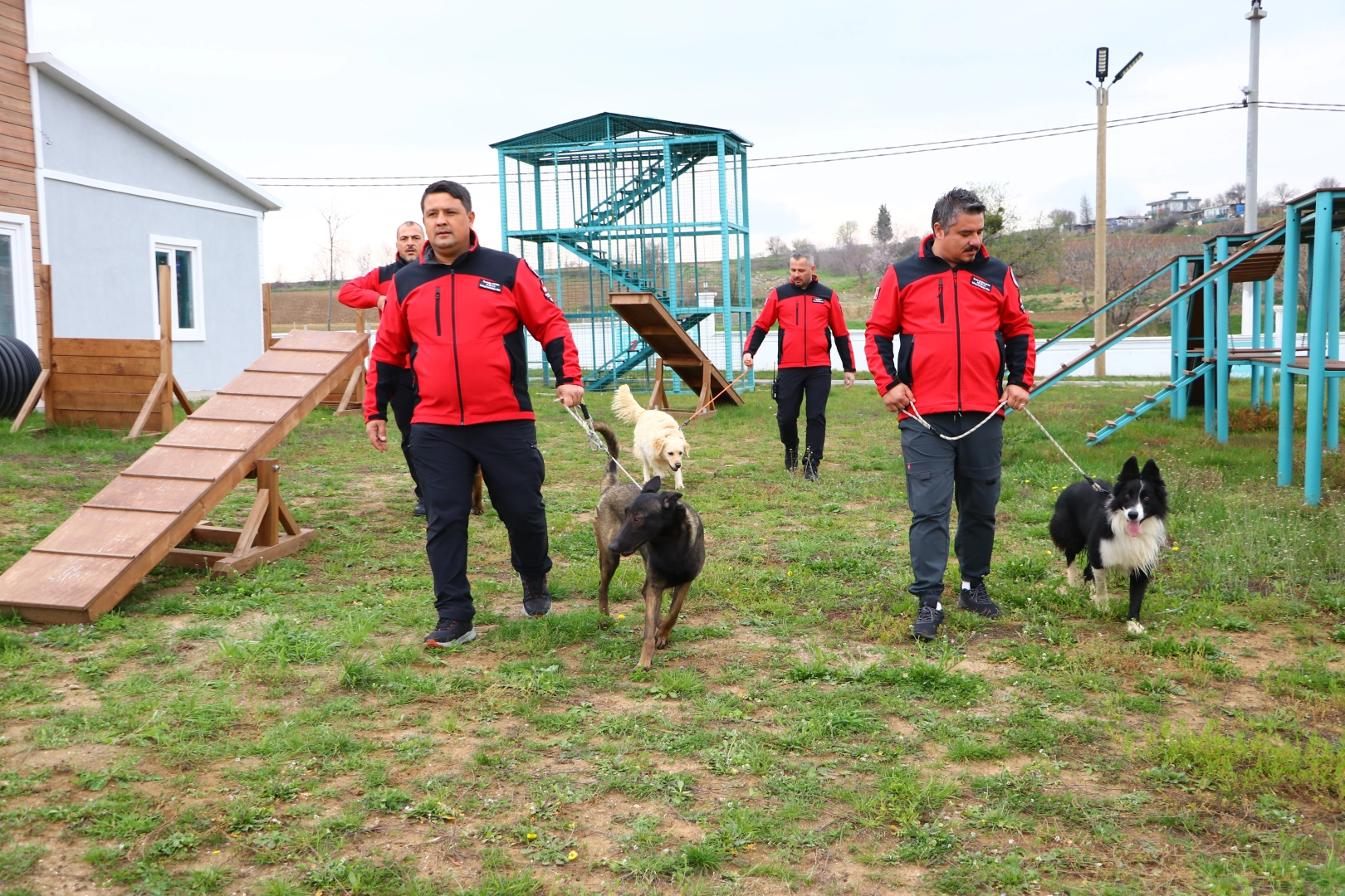 "Border collie" cinsi arama kurtarma köpeği Paşa ile "Belçika kurdu" Badi ve Diva, bir yıl önce hizmete açılan Deprem Arama Kurtarma ve K9 Köpek Eğitim Parkı'nda zorlu görevlere hazır hale getiriliyor.