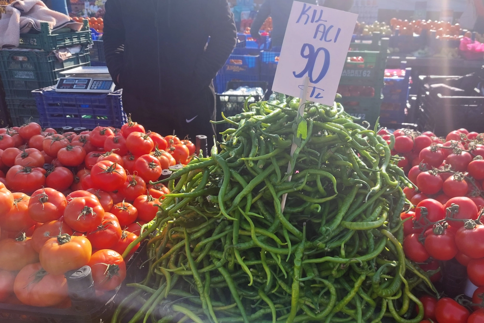 Pazarda birçok ürün içerisinde şampiyon acı biber oldu. Acı biberin kilosu 90 TL’den, tatlı biberin ise kilosu 50 TL’den satılıyor.