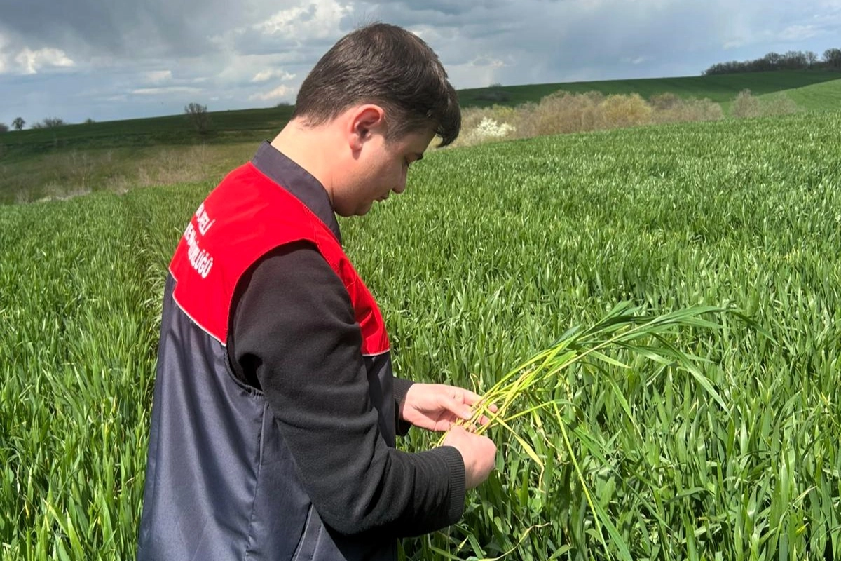 Kırklareli İl Tarım ve Orman Müdürlüğü ekipleri, Pehlivanköy ilçesinde bulunan buğday ekili alanlarda incelemelerde bulundu.